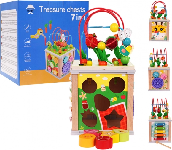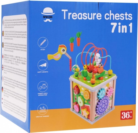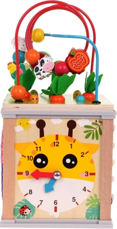De houten multifunctionele kubus is een uitstekend hulpmiddel voor de ontwikkeling van een kind. Hij biedt veel interactieve elementen die de fijne motoriek en de verbeelding stimuleren en spelenderwijs leren bevorderen. Het speelgoed is gemaakt van kwalitatief hout en beschilderd met veilige verven, wat duurzaamheid en een lange levensduur garandeert.