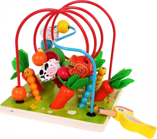 - Zijde met het spel “wortel en wormpjes” – bevat openingen voor het plaatsen van houten wortels en wormpjes met magneten.