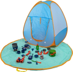 Deze geweldige kampeerset is de perfecte aanvulling voor jonge avonturiers die graag de natuur ontdekken. Ideaal voor kinderen vanaf 3 jaar, de set bevat een tent, mat, speelgoed en functionele accessoires waarmee kinderen echt kamperen kunnen naspelen.