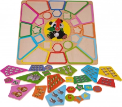 De educatieve set is een geweldige hulp bij het leren van tijd en tellen. Het bevat een kleurrijk bord met een centrale klok en beweegbare wijzers. Kinderen kunnen verschillende tijden instellen en de bijbehorende cijfers en aantallen dieren toewijzen. De hele set is gemaakt van hoogwaardig hout en geverfd met niet-giftige verf in levendige kleuren.
