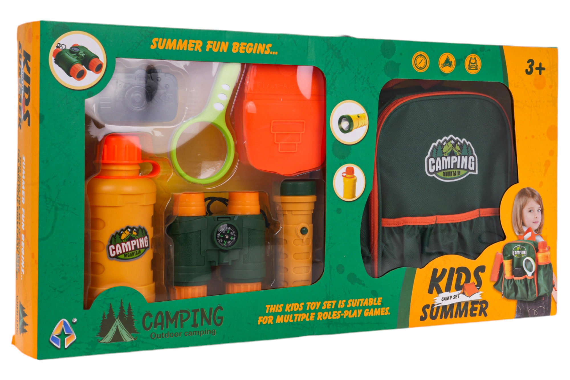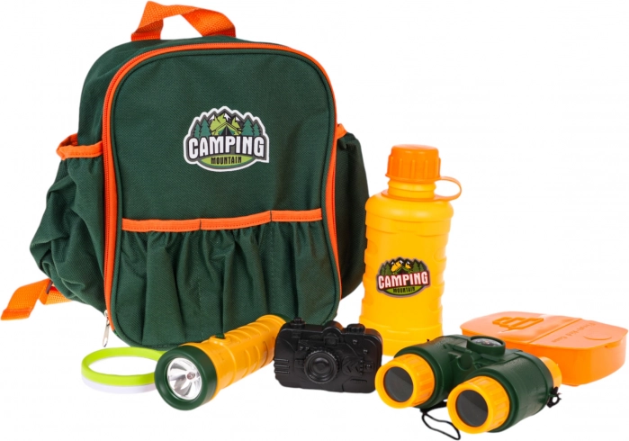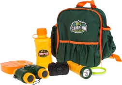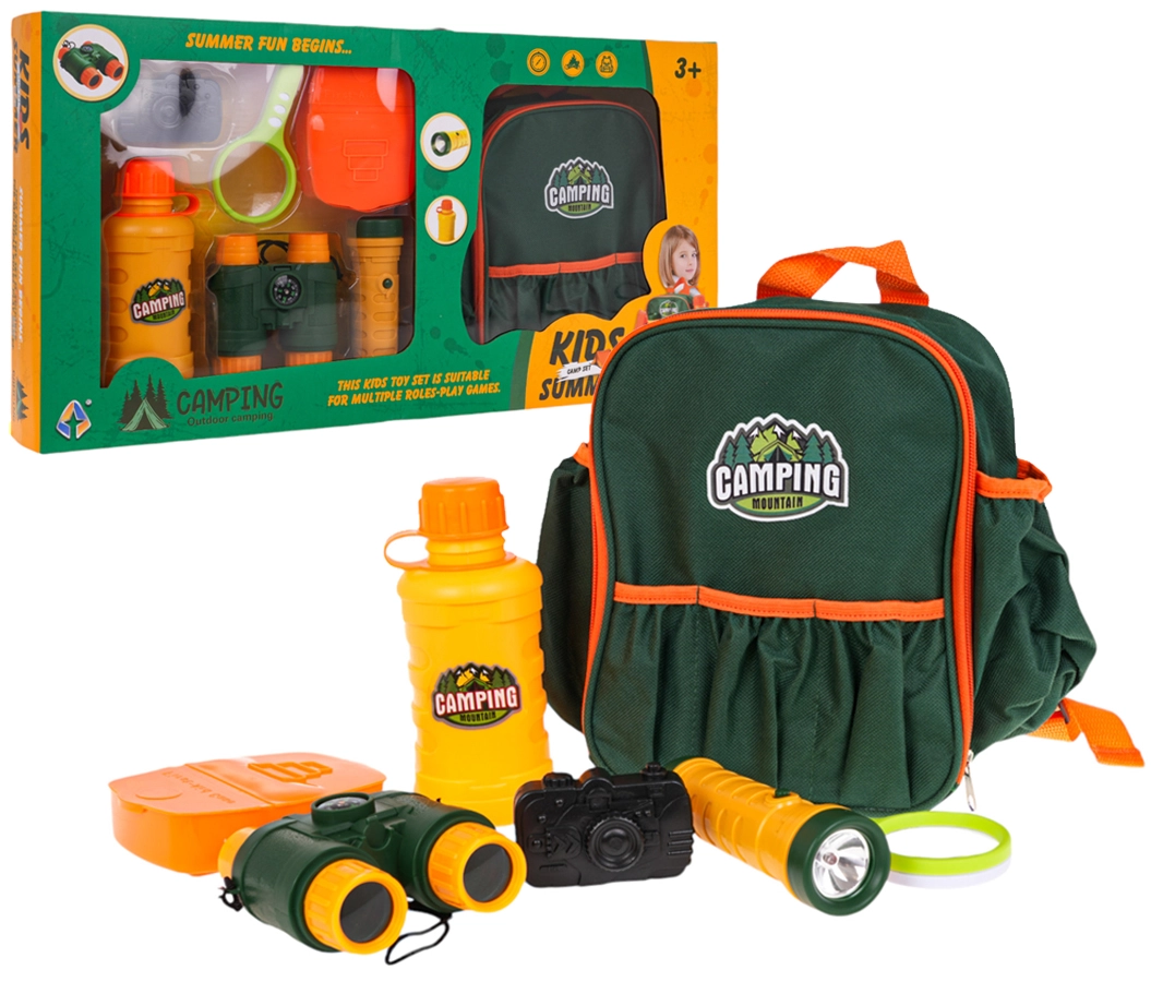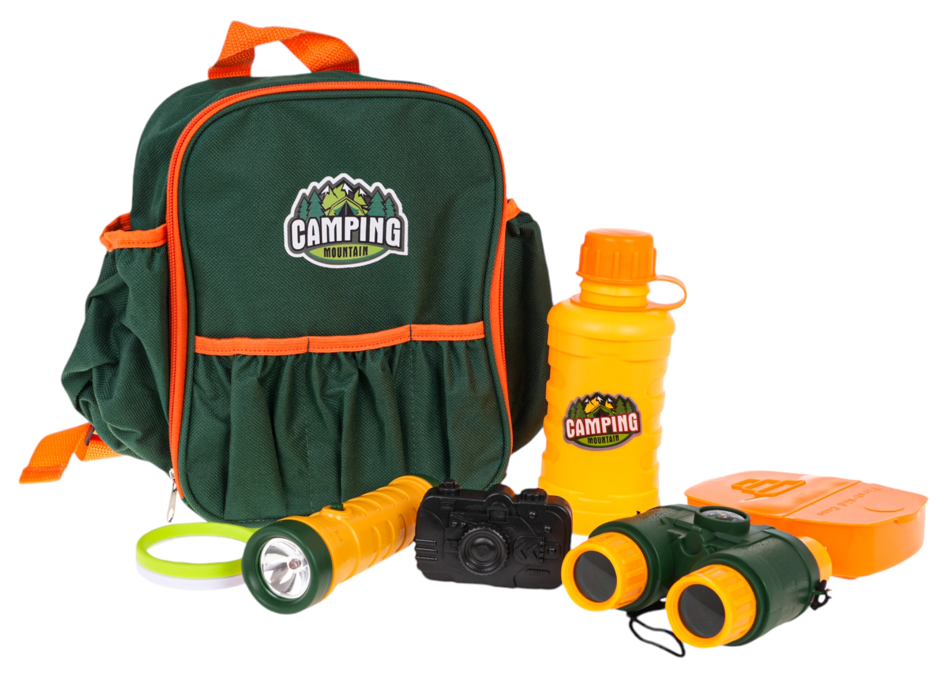 Set voor Kleine Ontdekkers is ideaal voor nieuwsgierige kinderen vanaf 3 jaar die de wereld willen verkennen. De set bevat een rugzak, verrekijker, zaklamp, loep, drinkfles, lunchbox en camera.