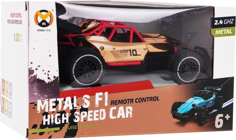 Gouden metalen speelgoedauto op afstandsbediening is gemaakt voor kinderen ouder dan 6 jaar die willen genieten van de spanning van snelle ritten. Het model is op schaal 1:20 en de rubberen banden zorgen voor uitstekende grip op het oppervlak. De metalen carrosserie zorgt voor hoge duurzaamheid, waardoor het ideaal speelgoed is voor actieve kinderen.