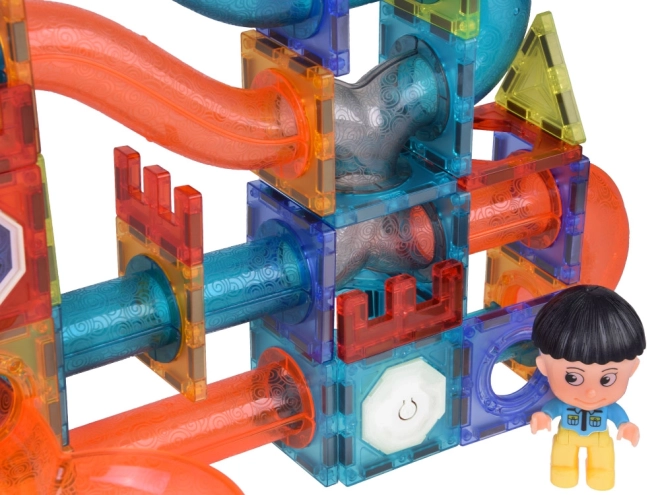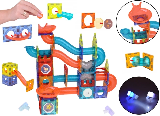 Deze kleurrijke set magnetische blokken laat kinderen eenvoudige vormen en complexe 3D-constructies en knikkerbanen ontwerpen en bouwen. Geselecteerde onderdelen zijn voorzien van LED-achtergrondverlichting, die spectaculaire lichttunnels voor knikkers creëert en elke bouw letterlijk laat stralen. In de doos vind je ook stickers en een duidelijke instructie met inspiratie.