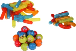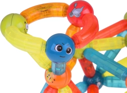 Deze bouwset van Jokomisiada bevat in totaal 76 kleurrijke magnetische elementen, waarmee uiteenlopende vlakke en ruimtelijke structuren kunnen worden gemaakt. Kinderen kunnen zo hun creatieve vermogens en logisch denken ontwikkelen, van de eenvoudigste tot meer complexe vormen. De gebruikte materialen zijn hoogwaardig en veilig, wat wordt onderstreept door de stevig ingesloten magneten in de blokken voor eenvoudig en betrouwbaar verbinden. Bevat ook een handleiding met constructievoorbeelden die uitnodigt tot verdere experimenten.