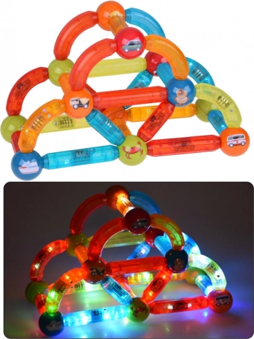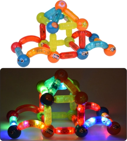 De magnetische bouwset maakt het mogelijk om diverse vlakke en driedimensionale structuren te bouwen, stimuleert creatief spel en ontwikkelt motorische en logische vaardigheden.