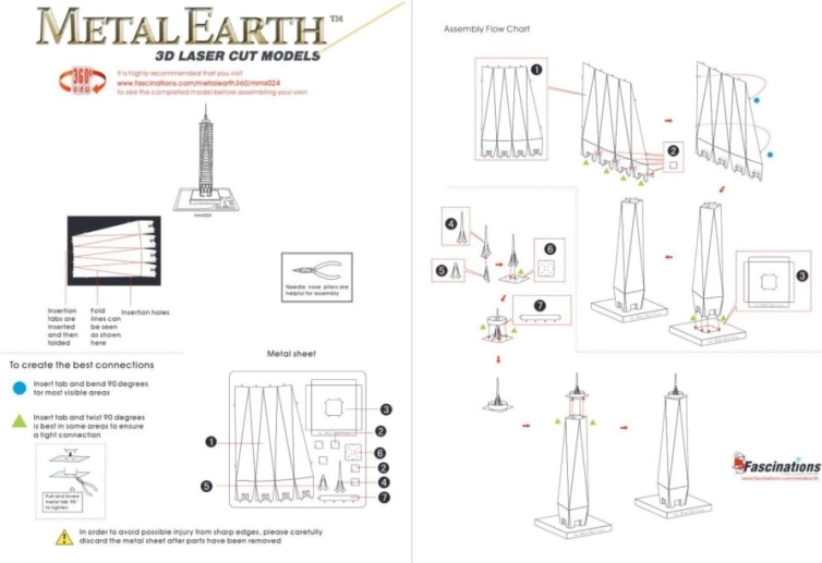De montage verloopt zonder lijm – de onderdelen worden verbonden met vergrendelingen en omgebogen lipjes. Met een beetje geduld en een simpel tangetje krijg je een fascinerende decoratie en een geweldig cadeau voor liefhebbers van architectuur en technische modellen.