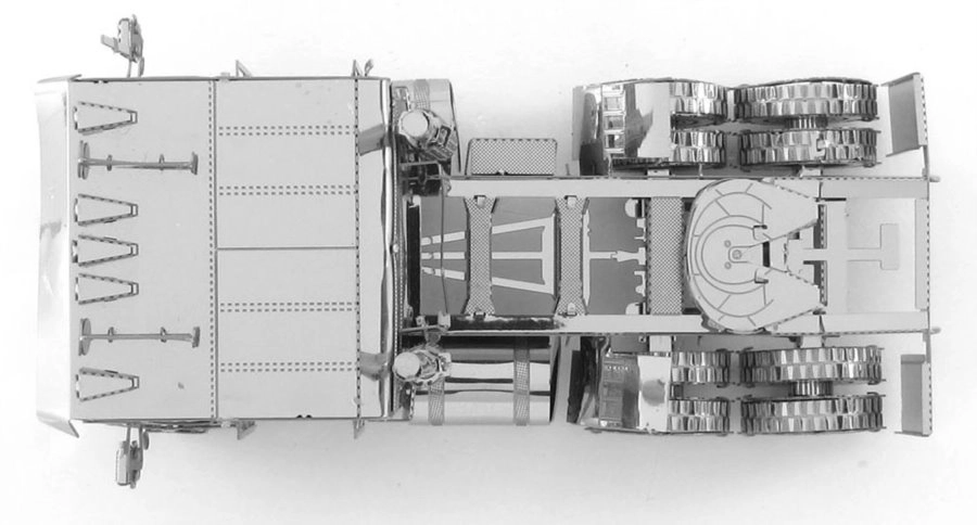 Bouwen vereist geen lijm – onderdelen worden verbonden met vergrendelingen en omgebogen lipjes. Voor comfortabel monteren raden we kleine zijkniptangen en platte pincetten aan. Het voltooide model meet ongeveer 7,8 × 5,5 × 3,2 cm en is een geweldig cadeau voor modelbouwers en truckfans.