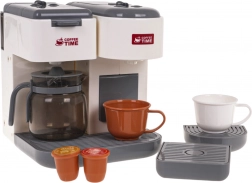 De interactieve tweedelige set omvat een espressomachine en een capsulekoffiemachine, die indruk maken met hun realistische uiterlijk en functies. Kinderen kunnen beide apparaten tegelijk gebruiken of loskoppelen en met elk afzonderlijk spelen. De koffiemachine heeft een te openen koffievak, een waterreservoir en drie knoppen voor het bereiden van een kleine of grote koffie en het starten van de waterfunctie. Tijdens het koffiezetten klinken realistische geluiden en knippert een rood lampje bij het uitstromen van water.