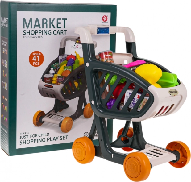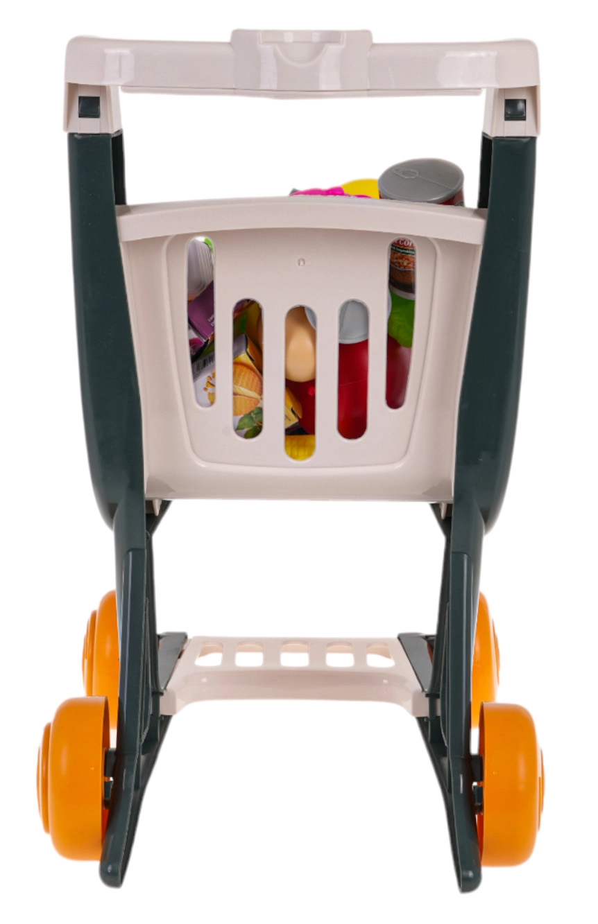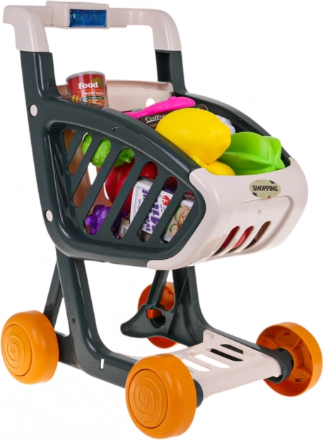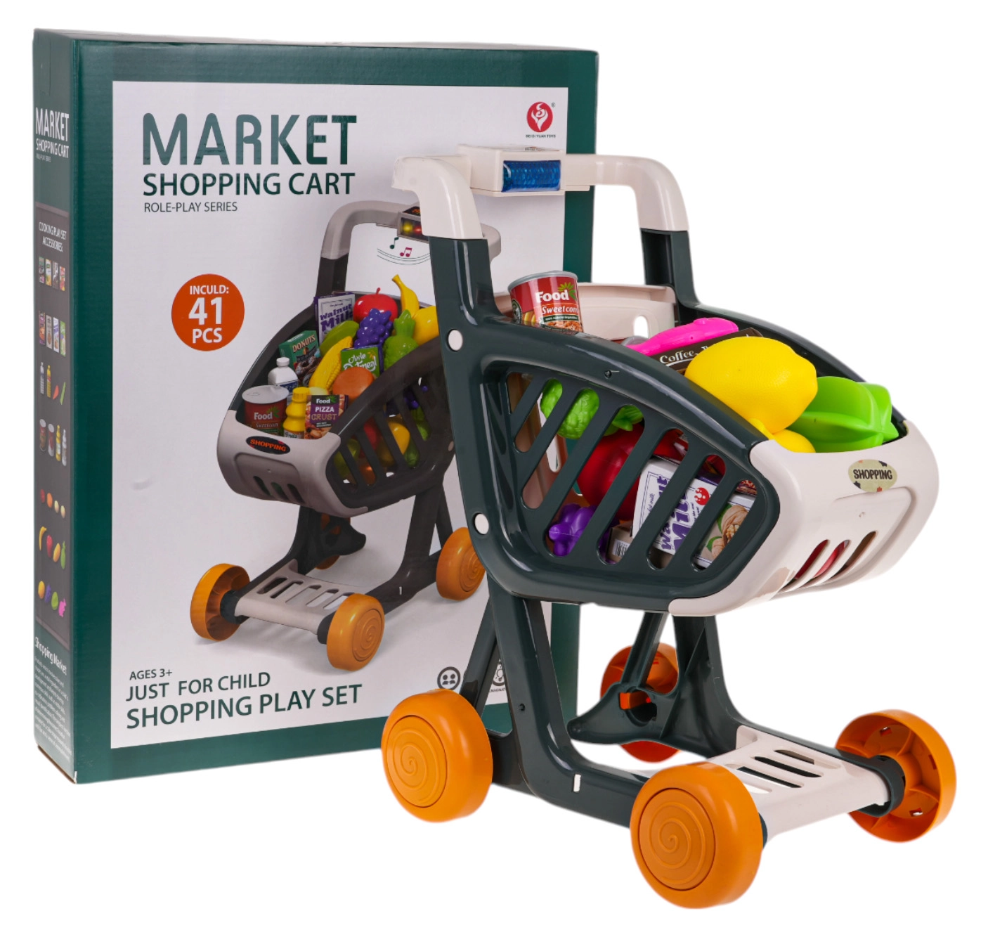 Interactieve winkelwagen voor kinderen vanaf 3 jaar biedt veel plezier en leert tegelijk. Heeft een stabiele constructie, zwenkwielen en een bedieningspaneel met licht en muziek. Na het indrukken van de blauwe knop gaan knipperende LED-lampjes (groen, rood, blauw) branden en klinken vrolijke liedjes. Inclusief 41 accessoires voor realistisch winkelspeelplezier. Batterijen 3× AG13 zijn meegeleverd.