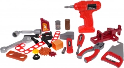 De set bevat een elektrische batterijboor met verwisselbare bits, een inbussleutel en andere gereedschappen, zoals een hamer, schroevendraaier en zaag. Met deze set kunnen kinderen echt kluswerk nabootsen, hun verbeelding prikkelen en basiswerkprincipes leren.