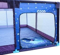De zachte rechthoekige babybox wordt een veilige plek om te spelen en te rusten voor je kleintje. Dankzij het lage gewicht verplaats je hem gemakkelijk naar waar je hem nodig hebt, of dat nu in de woonkamer is of in de tuin. De netstofwanden bieden uitstekend zicht op wat er binnen en rondom gebeurt en zorgen voor optimale luchtcirculatie.