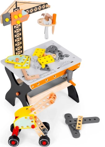 Ontdek een creatieve werkplaats voor kleine doe-het-zelvers: een robuuste houten werkbank met kraan, gereedschap en verbindingsdelen van het merk ECOTOYS. Stimuleert fijne motoriek, oog-handcoördinatie en creativiteit, heeft een veilig ontwerp zonder scherpe randen en maakt het mogelijk om met de meegeleverde onderdelen tot 9 verschillende speeltjes te bouwen.