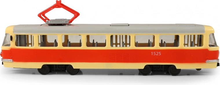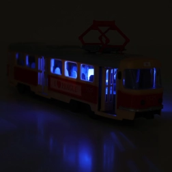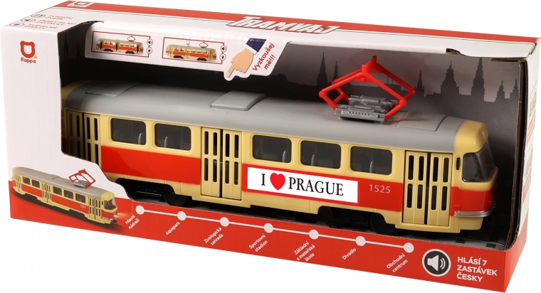 Deze tram is 28 cm lang, gemaakt van hoogwaardig plastic en rijdt met vrije loop. Het speelgoed maakt handmatig openen van de deuren mogelijk, die sluiten met een knop op het dak van de wagen. Bij elke opening klinkt een aankondiging in het Tsjechisch, wat bijdraagt aan de authenticiteit.