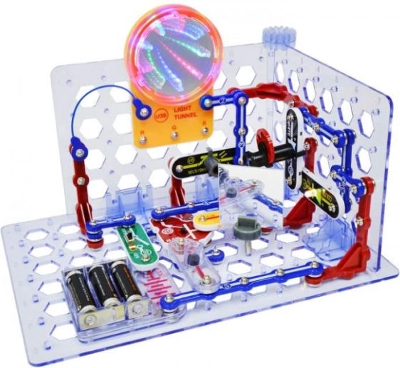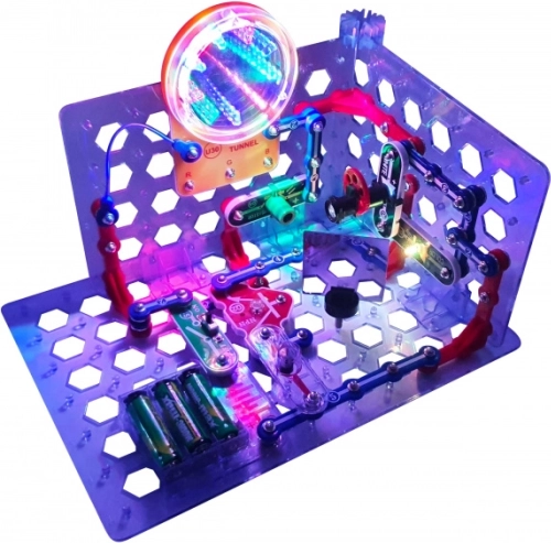 De Boffin II 3D bouwset tilt klassieke snap‑circuits naar een nieuwe dimensie. Met vijf basisrasters (1 groot + 4 kleine) bouw je projecten zoals een telegraaftoren, lichttunnel, sirene, vuurwerk of 3D‑gloed. Elk project is duidelijk beschreven in de complete handleiding – zo controleer je eenvoudig dat alles werkt.