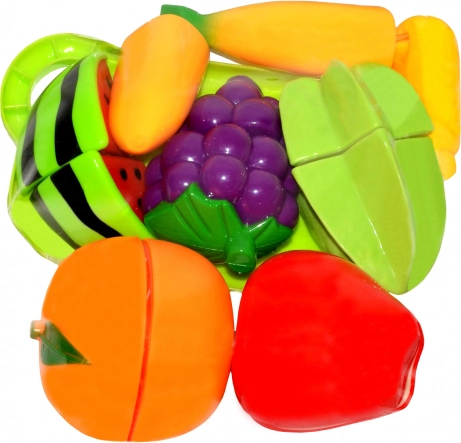 Deze set snijfruit geeft kinderen een realistische ervaring met het bereiden van eten, volledig veilig. De fruitstukken zijn voorzien van klittenband, waardoor ze eenvoudig met het meegeleverde kunststof mes kunnen worden “doorgesneden” en weer vastgemaakt. Kinderen trainen spelenderwijs hun fijne motoriek, hand-oogcoördinatie en ontwikkelen fantasie bij het doen alsof ze koken.