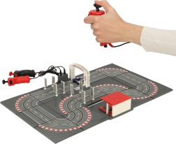 Elektrische racebaan is een geweldig speelgoed dat kinderen meevoert naar de wereld van adrenalineraces. De set bevat acht delen die een baan met bochten vormen wanneer ze zijn gemonteerd. Een kind kan twee sportauto's besturen met behulp van joysticks, wat precisie en snelheid biedt bij het sturen van de voertuigen. Het spel bevordert de ontwikkeling van handmatige vaardigheden en verbetert de reflexen, vooral in de nabijheid van bochten, wat snelle reacties vereist.