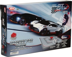 Elektrische racebaan vormt een fascinerend speelgoed dat kinderen meeneemt naar de wereld van spannende races! Bij de set horen twee sportauto's, waarmee kleine racers kunnen concurreren op het parcours vol bochten. De auto's worden bestuurd met joysticks, wat nauwkeurige controle over de snelheid mogelijk maakt.