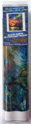 Diamantschilderen – werkwijze: De bovenkant van het canvas is bedekt met lijm en afgedekt met een transparante folie. Verwijder de folie geleidelijk per gedeelte naarmate je de steentjes aanbrengt. Bij het in één keer verwijderen van de volledige folie kan de lijmlaag vuil worden en kunnen de steentjes minder goed hechten. Het canvas bevat symbolen die in de bijgevoegde legenda staan en verwijzen naar het betreffende zakje met steentjes met hetzelfde nummer. Schud de steentjes uit het betreffende zakje in het bakje. Neem wat was in de punt van de pen, zodat de steentjes gemakkelijk aan de pen blijven kleven. Breng de steentjes met de pen op de afbeelding aan. Na het plakken van een bepaalde kleur giet je de steentjes terug in het zakje en ga je verder met de volgende kleur.