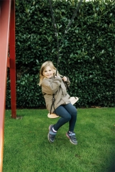 Schommel gemaakt van massief hout en weerbestendige touwen. De combinatie van natuurlijk hout en zwarte touwen zorgt voor een klassieke uitstraling.