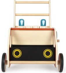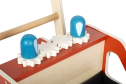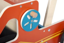 Voor het speelplezier en de ontwikkeling van de fijne motoriek zorgen functionele details: tandwielen, een draaiwiel met slinger en bewegende blauwe lampen. De uitneembare vilten mand dient als opbergruimte voor speelgoed en kleine spullen, zodat elke inzet snel en geordend verloopt.