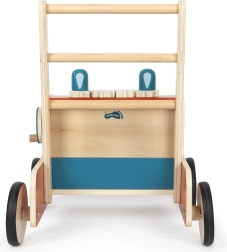 De stevige houten constructie en het geïntegreerde remsysteem geven kinderen vertrouwen tijdens het lopen en bij sneller rijden. Vier brede wielen zorgen voor stabiliteit op verschillende ondergronden.