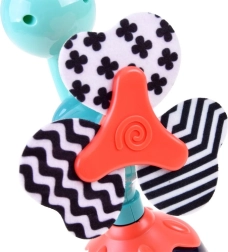 Dankzij de compacte afmetingen is het speeltje geschikt voor het blad van de kinderstoel, de tafel en een gladde vloer. Het is gemakkelijk schoon te maken en een geweldige hulp tijdens het voeren of wanneer je je kind even wilt bezighouden.