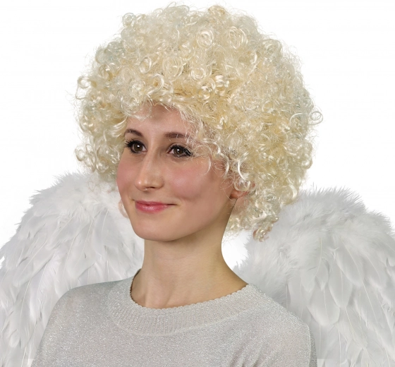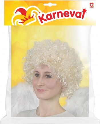 De korte blonde pruik met afrokrullen maakt je engelenkostuum in enkele seconden compleet en zorgt voor een onmiskenbare look.