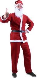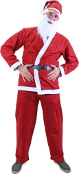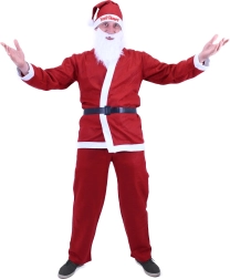 Breng de kerstsfeer tot leven met dit *professioneel vervaardigde Kerstman-kostuum*, dat gegarandeerd elke feestelijke gelegenheid doet stralen. Dit kostuum bevat de basiselementen van de outfit van de Kerstman, zoals een rode jas met witte boorden, rode broek, de klassieke Kerstman-muts eveneens met witte afwerking, en een zwarte riem die de look compleet maakt.