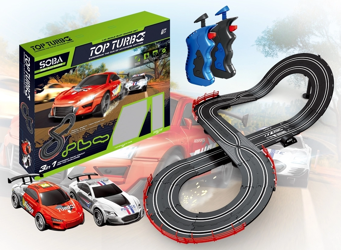 De baan kan op 3 verschillende manieren worden opgebouwd, zodat je het plezier makkelijk aanpast. Voeding via een 12V adapter levert constante prestaties zonder batterijen. Geweldig als cadeau en perfect voor familiewedstrijden.