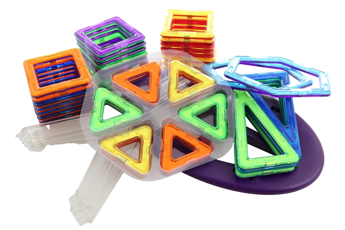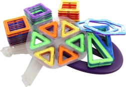 De magnetische bouwset bevat 72 onderdelen in verschillende kleuren en vormen, inclusief vrolijke stickers. Verpakt in een doos. Afmeting van de verpakking ca. 40×29×6 cm. Leeftijd 3+
