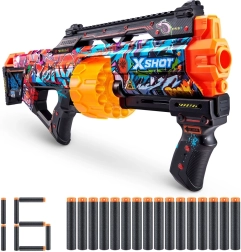 Maak je klaar voor episch plezier met de grootste foamblaster uit de X-Shot Skins-serie! Het model Last Stand Graffiti combineert een indrukwekkend bereik tot 27 m, snelschieten en uitstekende nauwkeurigheid. De automatisch roterende trommelmagazijn heeft plaats voor 14 darts en in de verpakking vind je in totaal 16 darts met Air Pocket-technologie voor snellere, verder reikende en nauwkeurigere schoten.