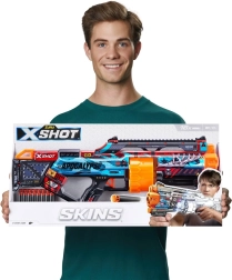Ga de strijd aan met de X-Shot Skins Last Stand blaster, die prestaties, stijl en plezier combineert. Dankzij de automatisch roterende trommel schiet je in een oogwenk 14 pijlen af, terwijl de ergonomische bouw en tactische greep voor een zekere houvast in elke situatie zorgen. De Skins-editie biedt 4 unieke “skins”, zodat je de look precies naar wens kunt kiezen.
