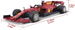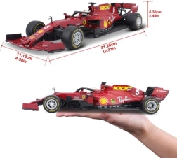 Het model vangt realistische designelementen, inclusief sponsorlogo’s en aerodynamische vormen die kenmerkend zijn voor Ferrari-racewagens.