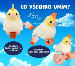 Bij het product hoort een armband waarmee het kind de vogel stevig om de pols kan houden tijdens het spelen.