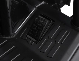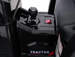 Voor veiligheid en comfort is er 2,4 GHz afstandsbediening met noodstop, brede zitting van eco-leer en grote wielen met grof profiel. Kinderen genieten van de rit met LED-verlichting en de rijk uitgeruste audiomodule – MP3, USB, Bluetooth, ingebouwde melodieën en geluiden in het stuur.