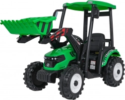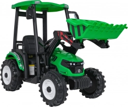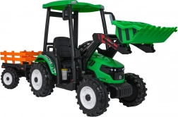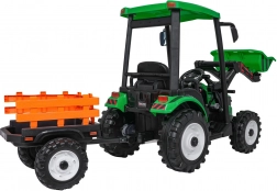 De elektrische tractor MEGA d68 in het groen is een topkeuze voor kleine tractorliefhebbers. Hij biedt een robuuste afwerking, een functionele voorlader om te scheppen en een ruime afneembare aanhanger voor speelgoed. De aandrijving wordt verzorgd door 2 krachtige 200 W motoren en een betrouwbare 24 V/7 Ah accu, die samen zorgen voor soepel wegrijden, twee snelheden en rijden vooruit en achteruit.