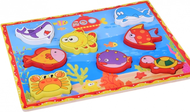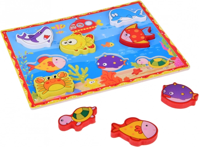 Ontdek de speelse houten inlegpuzzel met zeethema die de verbeelding en vaardigheden van kinderen stimuleert. Dankzij de grote stukken en vrolijke kleuren oefenen kinderen fijne motoriek, logisch denken, vormherkenning en leren ze de namen van zeedieren. De veilige uitvoering en hoge kwaliteit nodigen steeds opnieuw uit tot spelen.