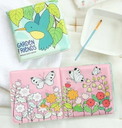 Dit magische badboekje verandert ieder badmoment in een creatieve activiteit. Zodra de pagina’s nat worden, komen de illustraties tot leven met heldere kleuren en ontdekken kinderen dieren die je in de tuin of op de weide kunt tegenkomen. Buiten het bad volstaat een natte kwast om te schilderen – na het drogen verdwijnen de kleuren en kan de pret opnieuw beginnen.