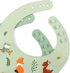 2× siliconen slabbetje (1× met bosdierenmotief, 1× effen)