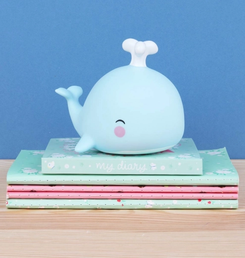 Schattig klein nachtlampje in de vorm van een walvis met een zachte, rustgevende gloed die kinderen helpt zich veilig te voelen en makkelijker in slaap te vallen. Het is draadloos, wordt niet warm en dankzij de timer van 15 minuten bespaart het batterijen – ideaal voor op het nachtkastje en voor onderweg.