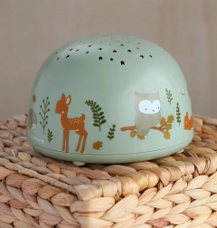 Creëer voor kinderen een fijne sfeer voor een rustige nachtrust. De huisjeslamp met sterrenprojectie tovert zachte lichtpatronen op muren en plafond, die kalmeren en een gevoel van veiligheid geven. Het mintgroene design met lieve bosmotieven past mooi in elke kinderkamer.