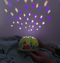 Het huisje met stervormige uitsparingen projecteert zachte lichtpatronen op muren en plafond die kalmeren en een slaapachtige sfeer creëren.
