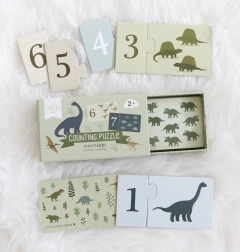 Een leuke, educatieve puzzel die kinderen vanaf 2 jaar leert tellen. Bevat 10 tweedelige puzzels waarbij kinderen cijfers koppelen aan afbeeldingen van dinosaurussen. Grote en stevige stukjes van karton maken het hanteren voor kleine handjes eenvoudig en een praktisch doosje zorgt voor makkelijk opbergen.