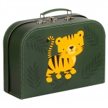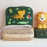Een schattige set van twee kinderkoffertjes met tijger- en junglemotief die kleine ontdekkers zal verrassen. Ze bieden een stevige kartonnen constructie met polyesterstiksel, een metalen handvat en sluiting en twee verschillende formaten voor het handig sorteren van speelgoed, schatten en knutselspullen.