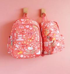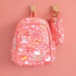 Stijlvolle koraalroze rugzak met een vrolijk motief die kleine avonturiers zal verrassen. Dankzij de gevoerde schouderbanden, de borstband tegen afglijden en het ademende, gevoerde rugpaneel zit hij de hele dag comfortabel. Het geïsoleerde voorvak houdt snacks en drankjes langer vers, terwijl de zijvakken ideaal zijn voor een drinkfles.