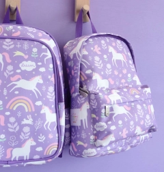 De borstriem helpt de schouderbanden op hun plek te houden, zodat de rugzak beter zit, ook tijdens rennen en spelen. De kleurrijke print met eenhoorns en een regenboog maakt van deze rugzak een stijlvolle maatje voor kleine avonturiers.