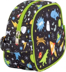 Zorg voor overzicht in de hygiëne van kinderen, ook onderweg. Deze speelse toilettas met ruimtemotief biedt plek aan shampoo, zeep, tandenborstel, tandpasta en kleine accessoires. Dankzij de zijlus is hij makkelijk te dragen en in de badkamer of douche op te hangen.