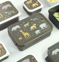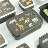 Deze praktische lunchbox met savannedierenmotief maakt zowel kinderen als ouders blij. Dankzij het betrouwbare klikdeksel valt de inhoud niet eruit en blijft alles langer vers. Het uitneembare schaaltje met twee vakken maakt het eenvoudig om fruit, een sandwich of snacks te scheiden.