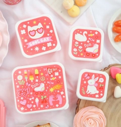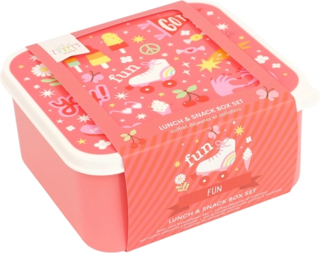 Ontdek de praktische set van 4 snackdoosjes van A Little Lovely Company, die dankzij de verschillende formaten perfect zijn voor lunch, fruit, groenten en kleine snacks. De doosjes hebben een uniforme, speelse print en kunnen gemakkelijk in elkaar genest worden, zodat ze thuis bijna geen ruimte innemen.