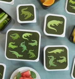Ontdek de veelzijdige set lunch-/snackboxen van A Little Lovely Company met een speelse krokodillenprint. Vier praktische formaten dekken alles van sandwiches tot fruit en kleine snacks. De boxen openen gemakkelijk, sluiten veilig en na gebruik schuif je ze in elkaar om ruimte te besparen.